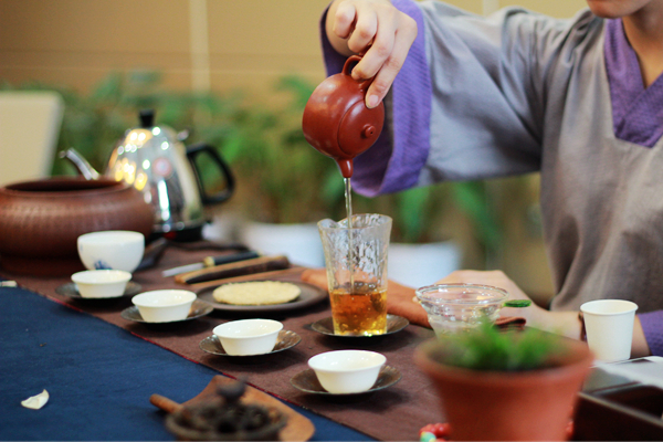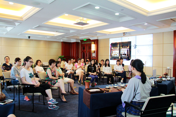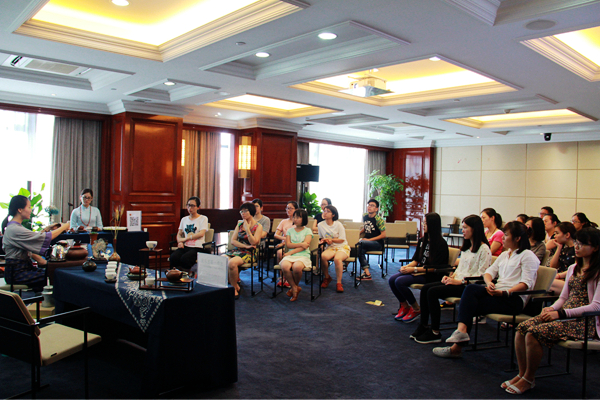 茶藝是一種以茶為媒的生活禮儀,也被認為是修身養性的一種方式,它通過沏茶、賞茶、聞茶、飲茶,增進友誼、美心修德。本次培訓設茶藝展示和理論知識講解兩個環節。茶藝師首先示范講解了茶具的擺放位置、器皿的名字及作用、向客人敬茶和奉茶的順序及動作等較為實用的知識和技巧,并現場沖泡演示,讓學員更為直觀地了解整個過程。隨后,她介紹了茶葉的基本分類、品質特性、加工工藝等知識,讓學員在理論與實踐兩方面了解茶學與茶文化基礎,掌握基礎沖泡技藝、茶葉鑒別等技能。