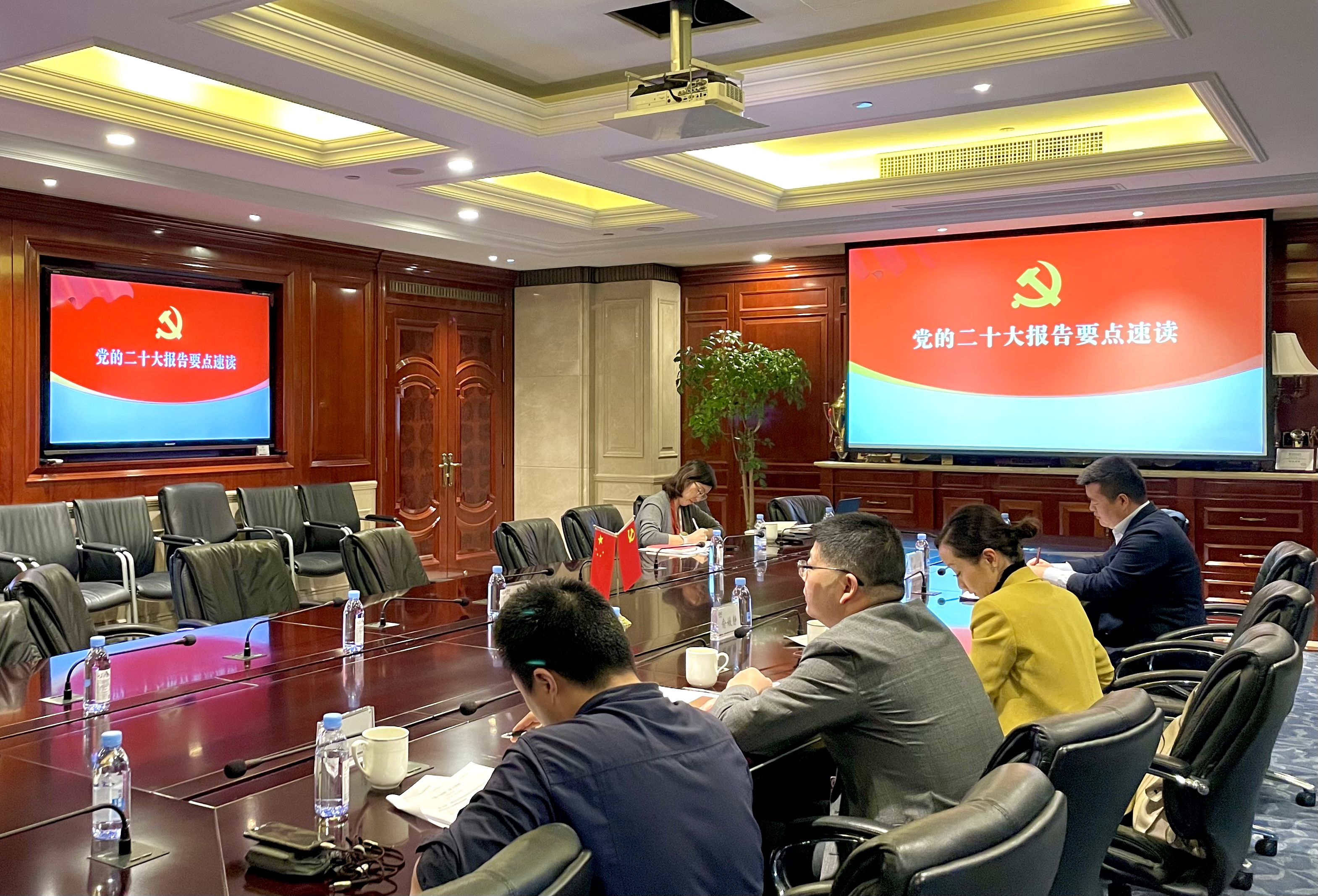 會上,俞媛靜帶領大家學習了黨的二十大報告,黨委班子成員緊密結合工作實際,就如何貫徹好黨的二十大報告精神進行了交流學習。